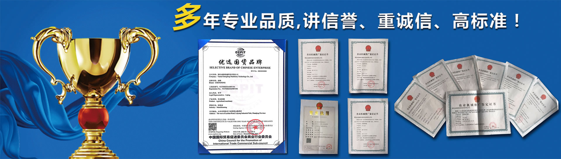 點擊進入>煙臺成峰機械科技有限公司,成立于2010年4月,是農(nóng)林機械專業(yè)生產(chǎn)廠 家。十余年專注果園管理機械、大棚機械的研發(fā)、生產(chǎn)與銷售。產(chǎn)品暢 銷全國三十一個省市、自治區(qū),60%的產(chǎn)品出口歐、美、日、韓等多個國家。高新技術(shù)企業(yè),有經(jīng)驗豐富的產(chǎn)品研發(fā)團隊,有十款產(chǎn)品通過國家農(nóng)機推廣鑒定,享有國家農(nóng)機補貼。公司現(xiàn)有激光切割機械、機器人焊 接、數(shù)控加工設(shè)備、表面處理設(shè)備數(shù)十臺,具備萬臺以上農(nóng)林機械的生 產(chǎn)能力。目前我們與山東農(nóng)業(yè)大學(xué),山東科技大學(xué)等多所高校達成產(chǎn)學(xué)研合作, 與山東農(nóng)機研究院、農(nóng)科院等多家科研單位達成產(chǎn)品研發(fā)合作,為傳統(tǒng)農(nóng)機的智能化賦能插上翅膀。我們遵循誠信、創(chuàng)新、合作、共贏的經(jīng)營理念,在可持續(xù)發(fā)展的道路上 穩(wěn)步前行。 查看詳情>